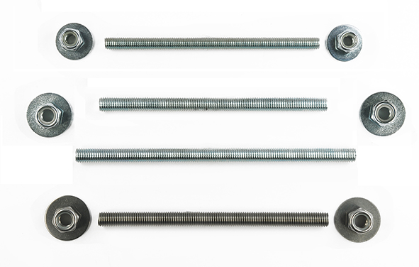 Barrette filettate, rondelle piane larghe, dadi autobloccanti.